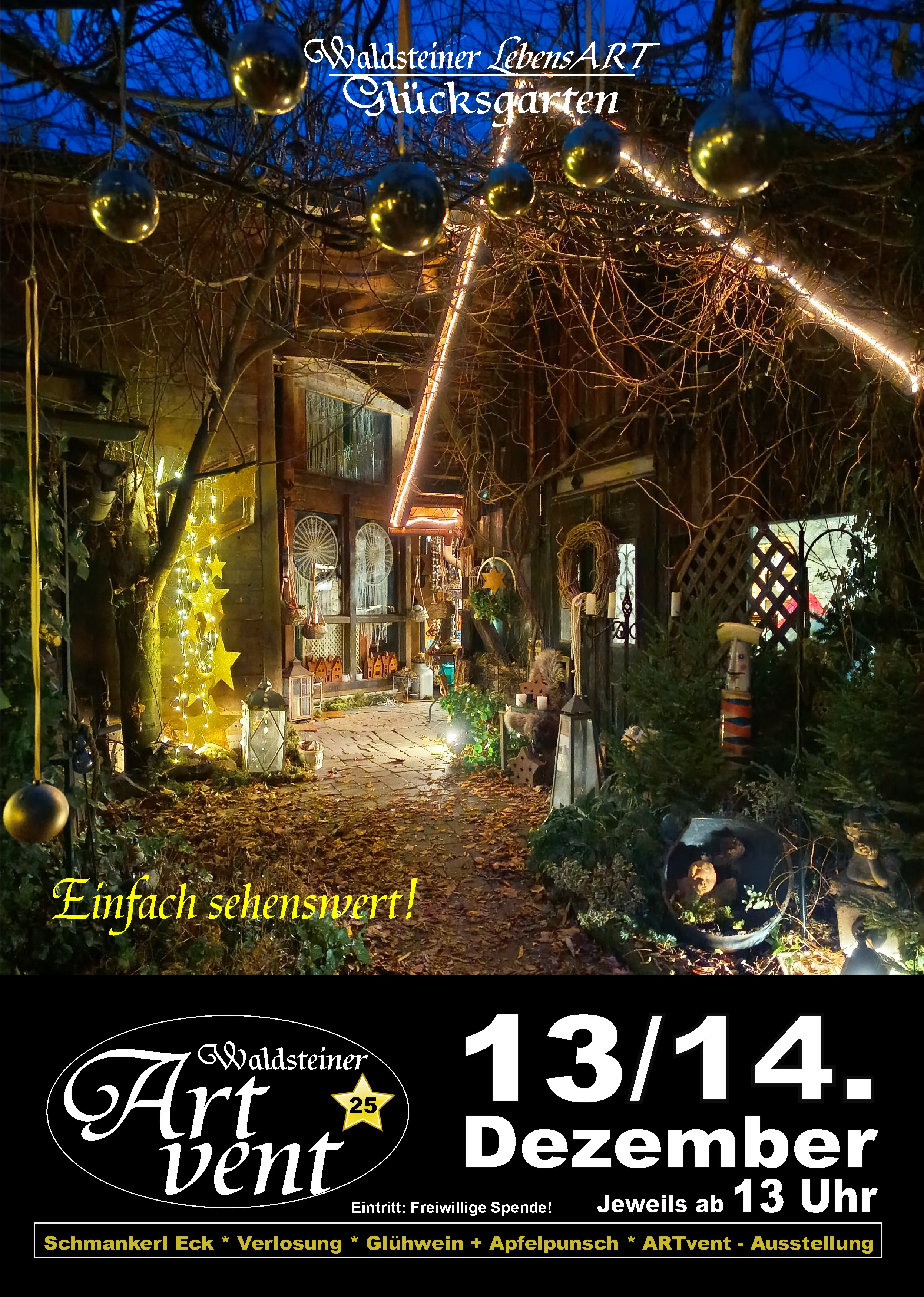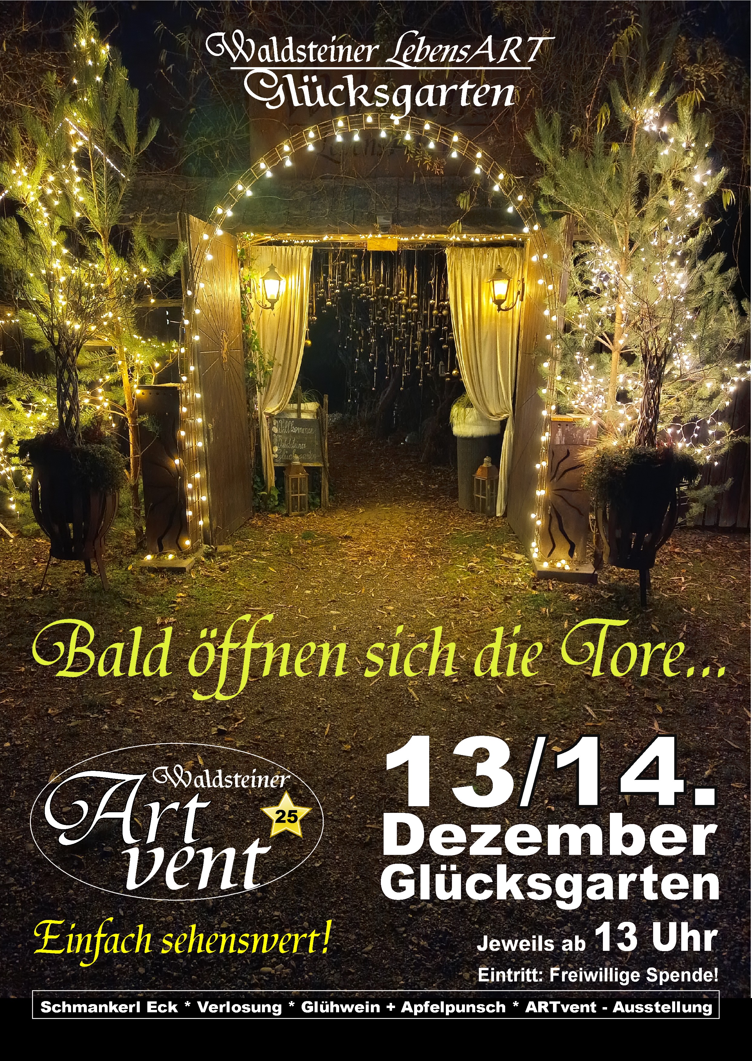 Wie in den letzten Jahren wird der Waldsteiner Glücksgarten auch heuer wieder im Advent seine Tore öffnen und zum Waldsteiner ARTvent einladen.